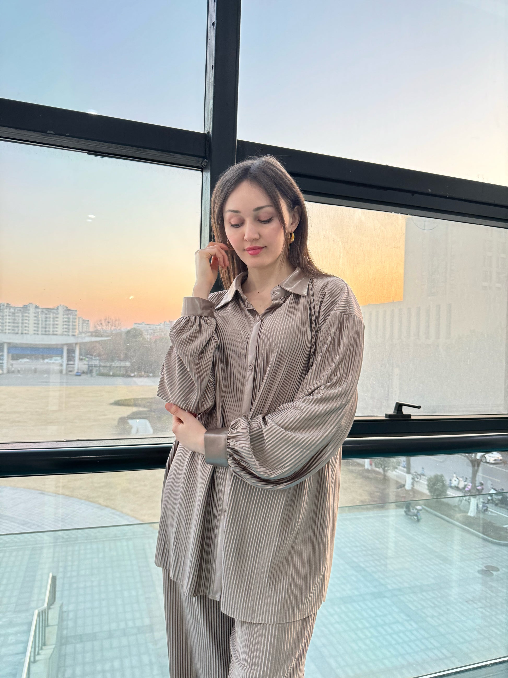 1. Pleated Silk Separates(Champagne)